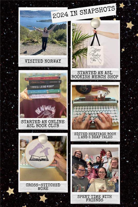 This year, I focused most of my reading on finding books with Deaf and hard-of-hearing characters. I wanted to curate a really good list to have linked on my socials (you can find the list HERE) and I had been enjoying figuring out what I liked, or didn’t like about how some Deaf and hard-of-hearing characters were written. My friend, Desi, and I went on a few LIVES on TikTok discussing this and I realized there was a need for an online ASL Book Club, so I started one on Fable (you can find more on the DEAFinitely Readers page) in April. Since then, we’ve read some of my favorites this year (Quiet Beautiful Things, Unravel, The Right Sign, and more) and had great discussions with the group. I do a livestream to discuss the week’s chapters on Wednesday nights.