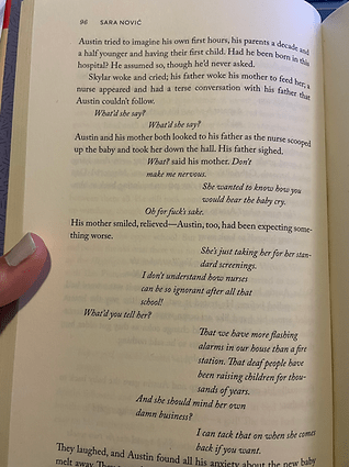 Every book that I read that has had a deaf character showed sign language differently. True Biz by Sara Nović did no quotes for speaking, and no quotes with italics for signing. She also had the characters signing placement spread out.